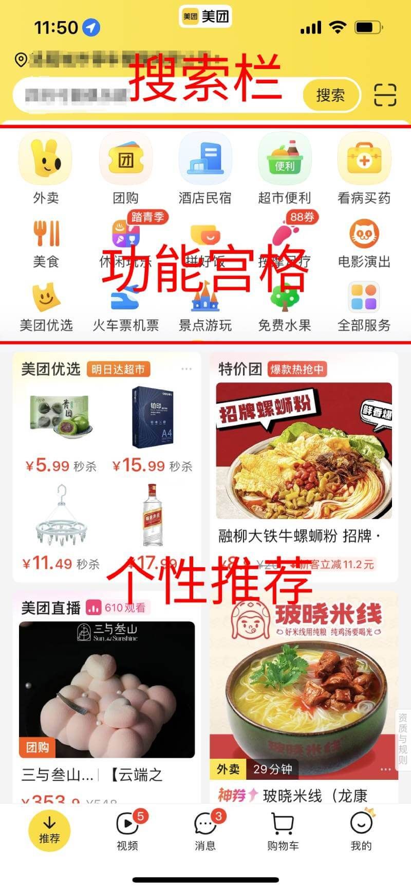 我想想,我们就以美团 APP 的首页为例吧。因为用的最多